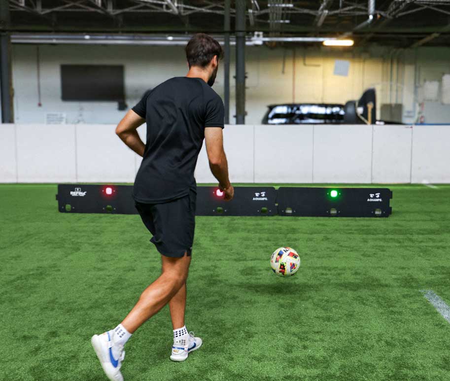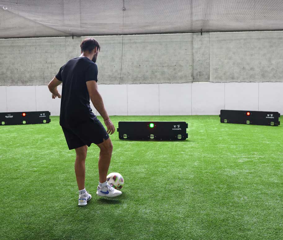 La Passing Station di A-Champs trasforma l’allenamento in una simulazione di partita, combinando feedback tecnico immediato e stimoli cognitivi dinamici.