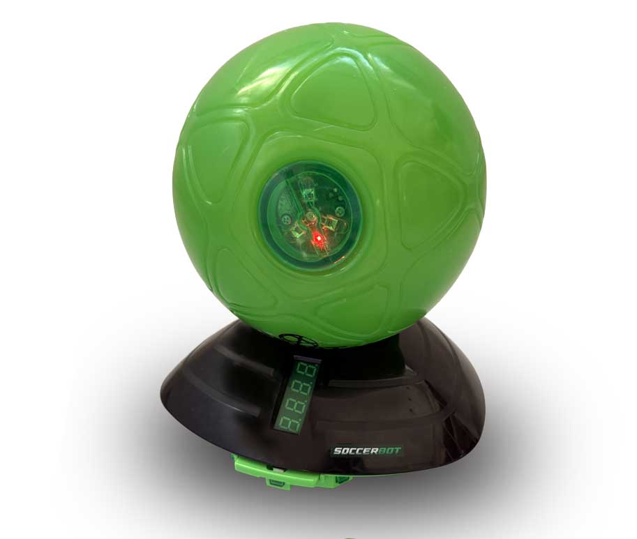SoccerBot è un kit composto da un pallone smart e un bot motorizzato dotato di sensori intelligenti a infrarossi. Il bot rileva la posizione del pallone e lo insegue! Trasforma il tuo salotto in un campo da calcio.